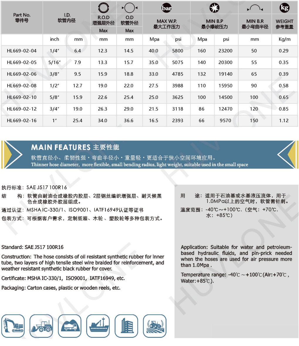 產品用途:適用于石油基或水基液壓流體,用于1.0MPa以上的空氣時,軟管需針刺。