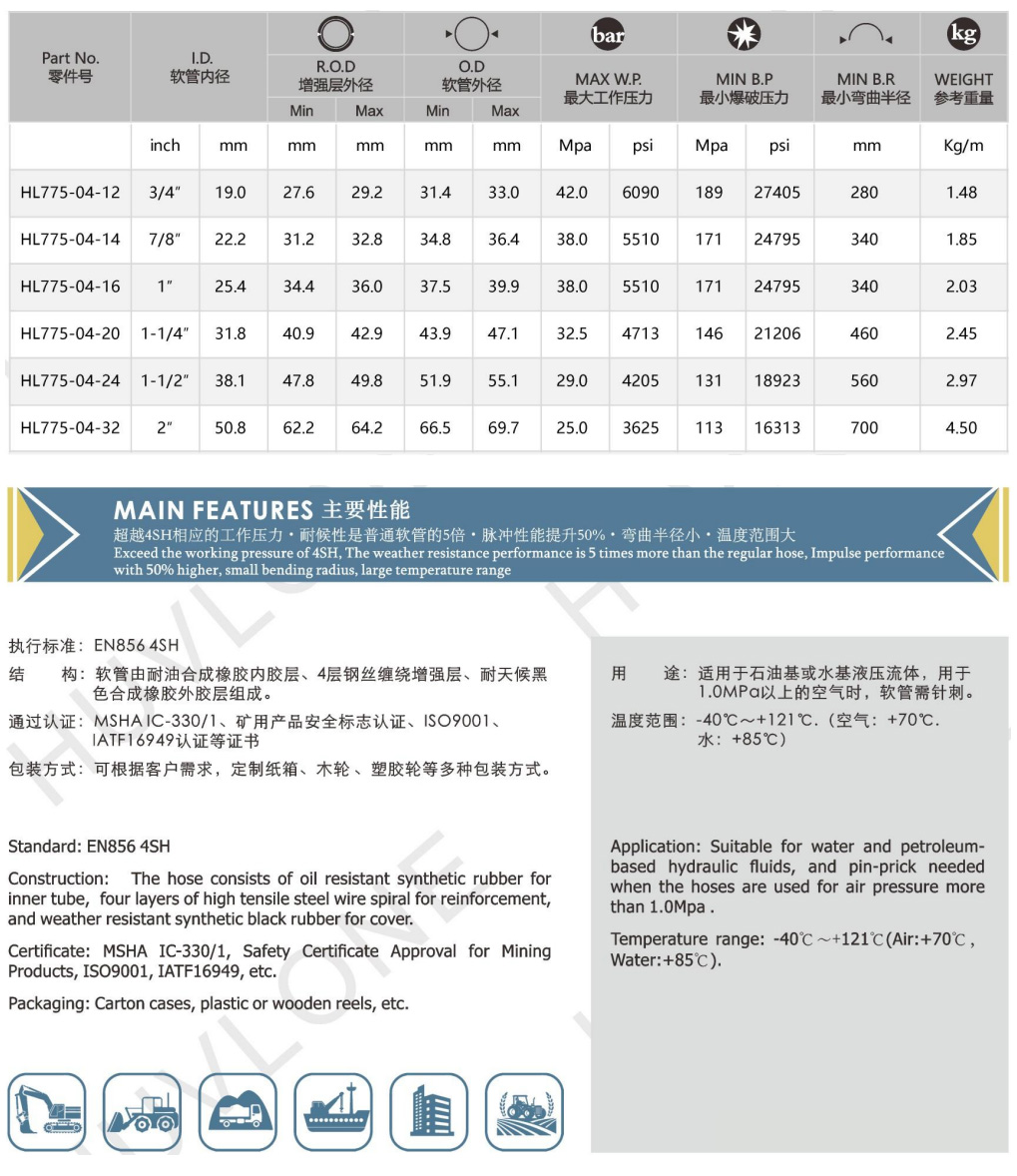 符合/超越DIN EN8564SH四層鋼絲纏繞橡膠軟管