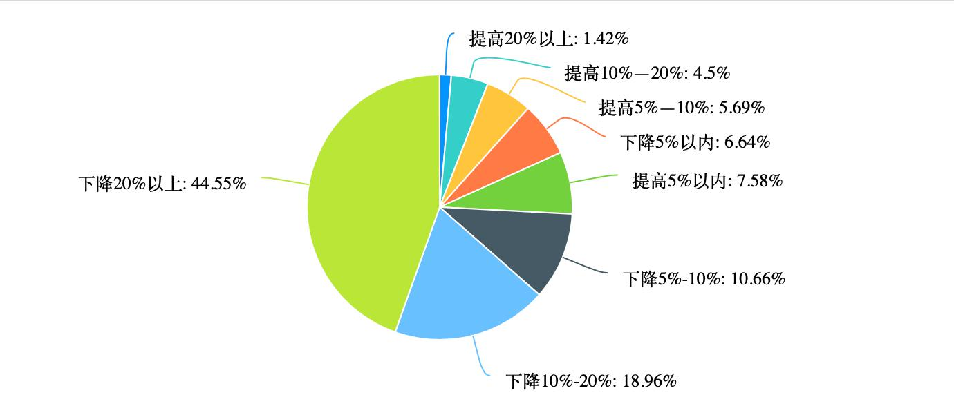 422 份問卷中,有 44.55%的企業(yè)認為產能運用較去年下降20% 以上,有 18.96%的企業(yè)認為下降了 10%-20%,具體見下圖 8。