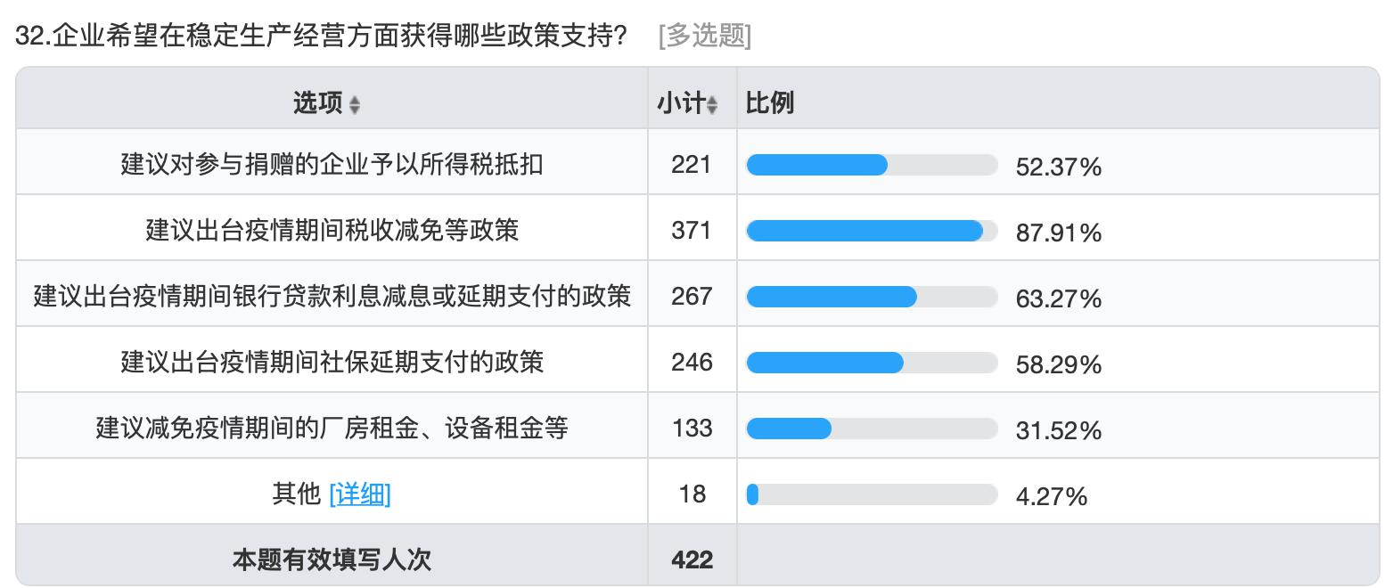 備注:有企業(yè)呼吁“各種稅費和利息應該是減免而不是延期““盡快恢復物流”等。
