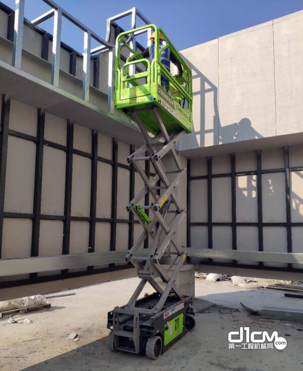 金禾租賃的中聯(lián)重科剪叉式高空作業(yè)平臺(tái)正在施工