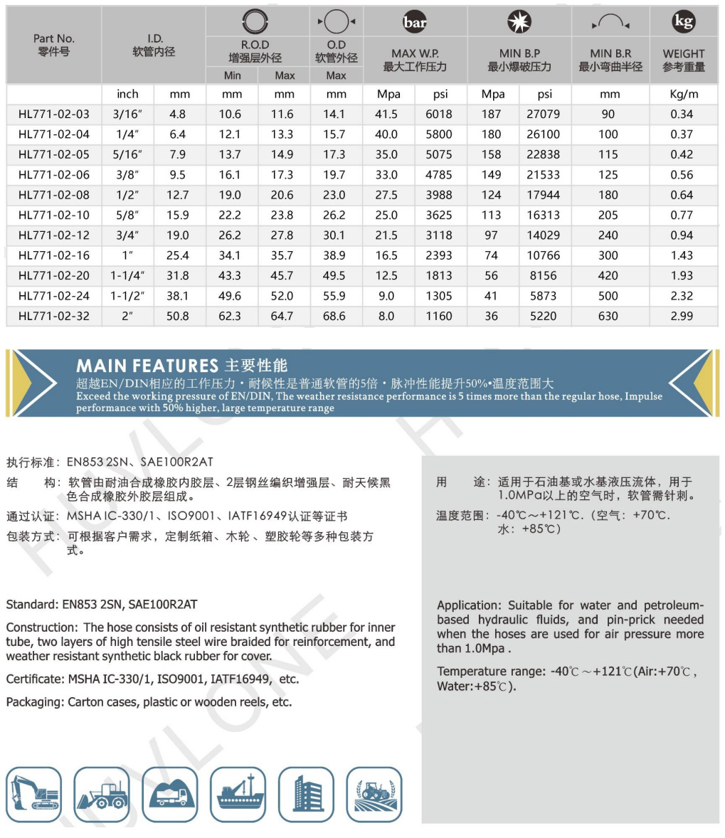 Product Usage:Suitable for water and petroleum-based hydraulic fluids,and pin-prick needed when the hoses are used for air pressure more than 1.0Mpa.